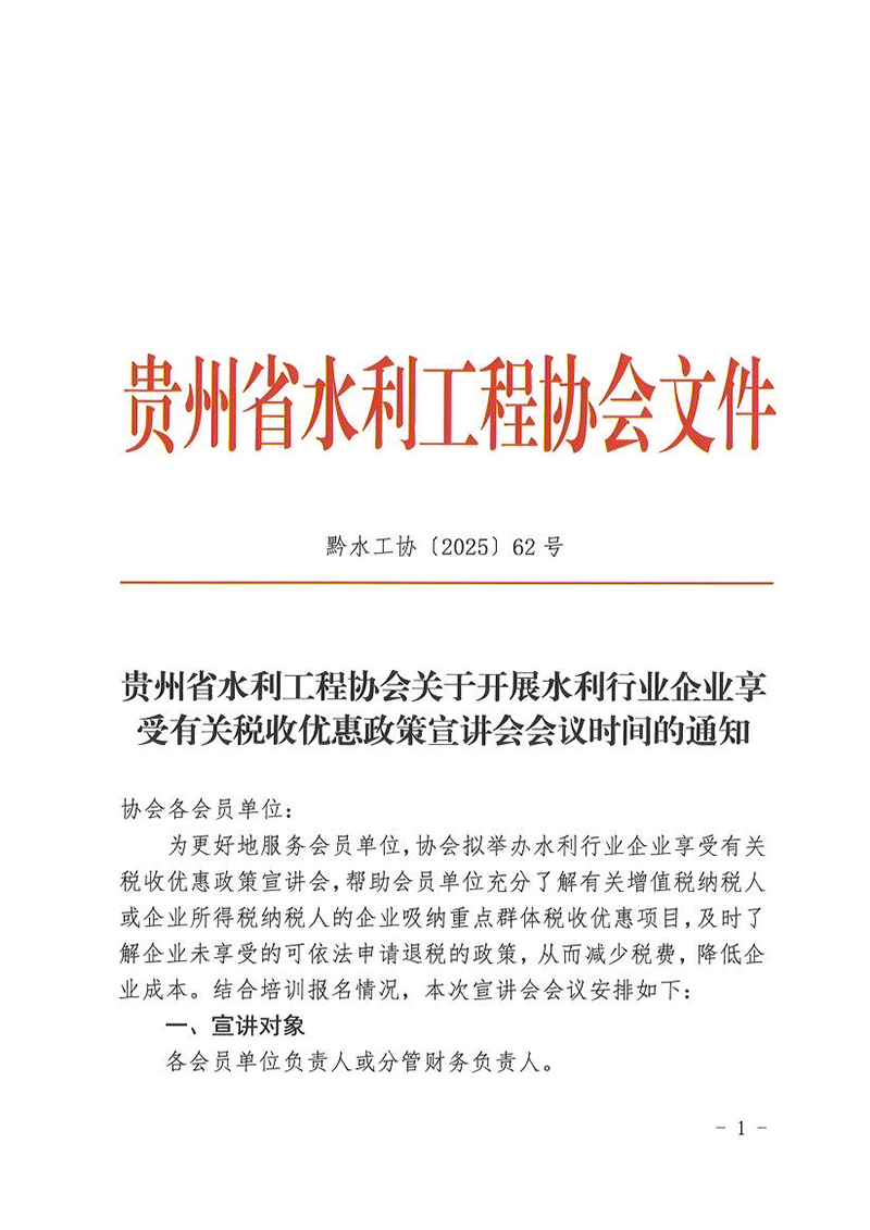 关于开展水利行业企业享受有关税收优惠政策宣讲会会议时间的通知