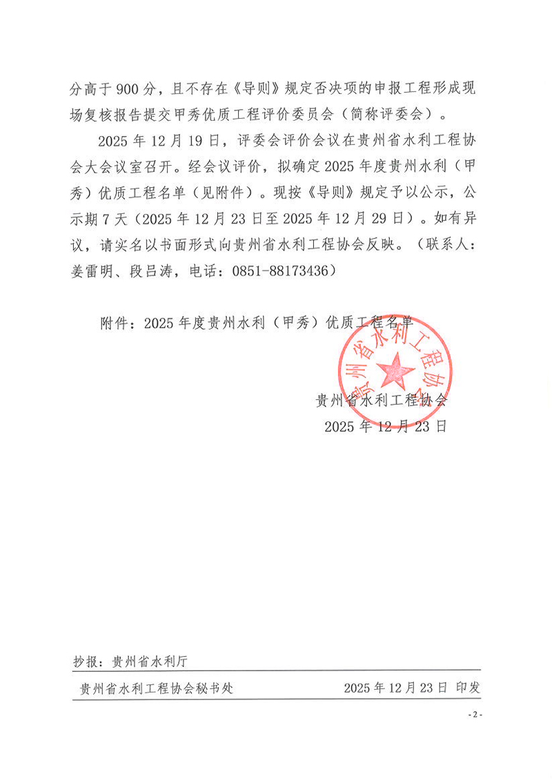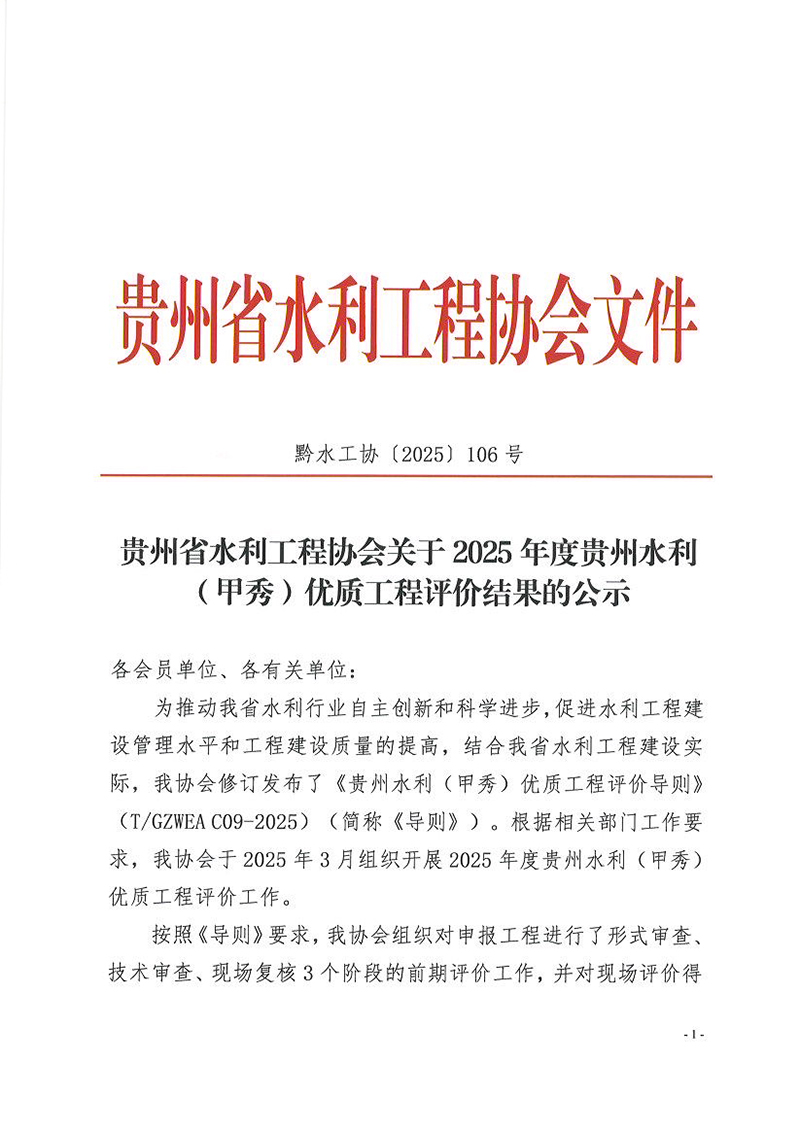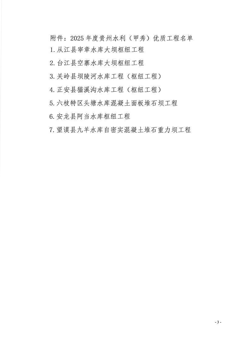 关于2025年度贵州水利(甲秀)优质工程评价结果的公示