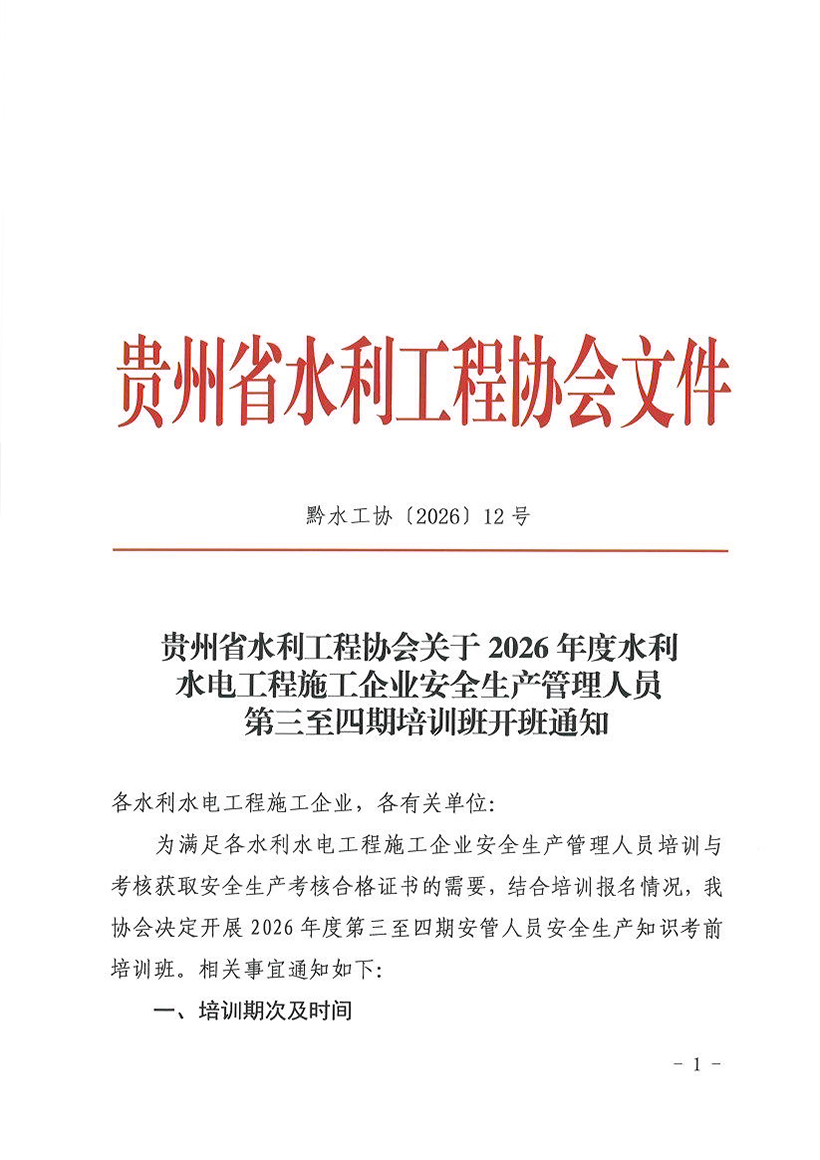 关于2026年度水利水电工程施工企业安全生产管理人员第三至四期培训班开班通知