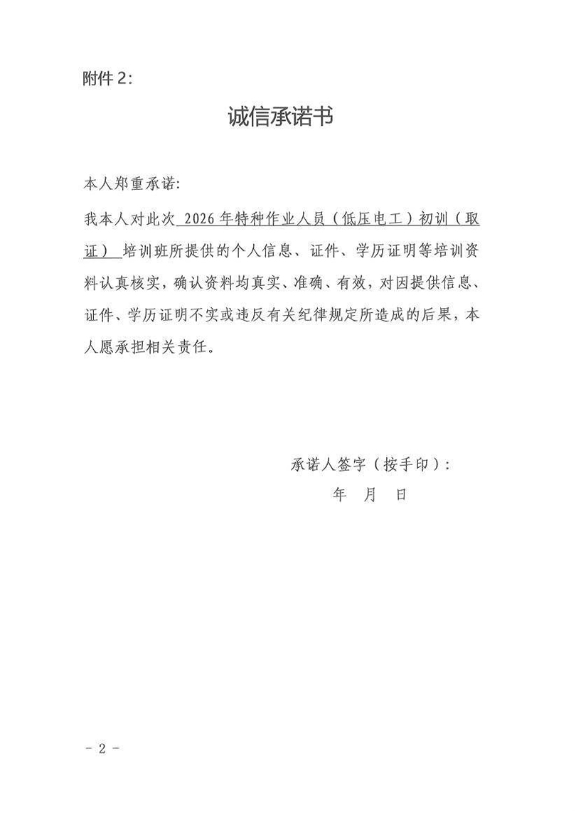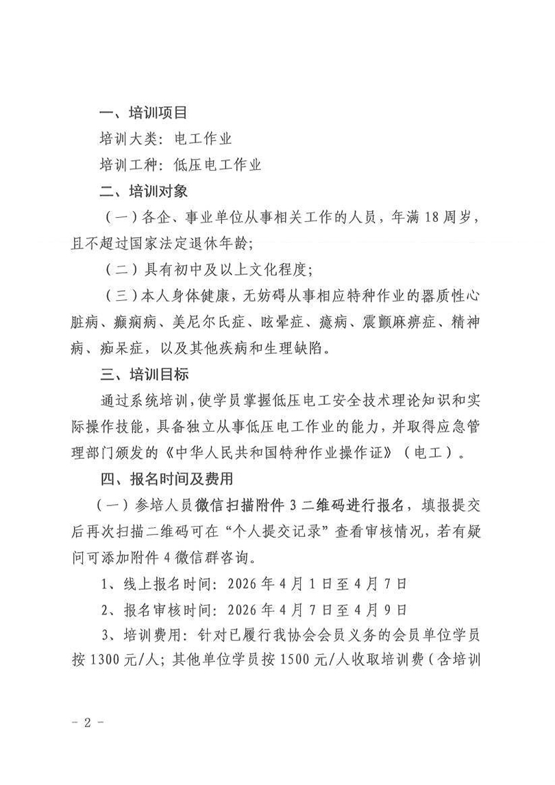 关于2026年特种作业人员(低压电工)初训(取证)培训预报名通知