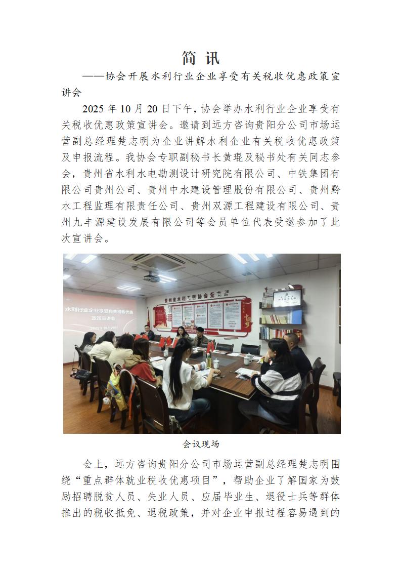 简讯:协会开展水利行业企业享受有关税收优惠政策宣讲会