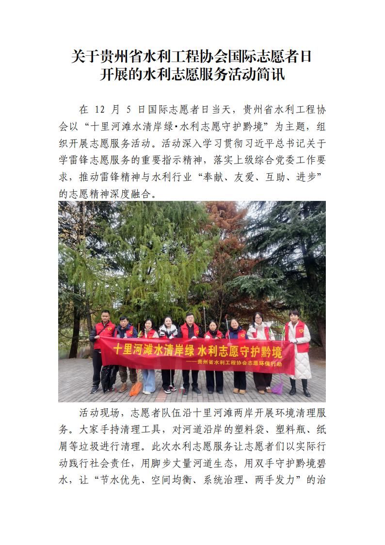 简讯:关于贵州省水利工程协会国际志愿者日开展的水利志愿服务活动