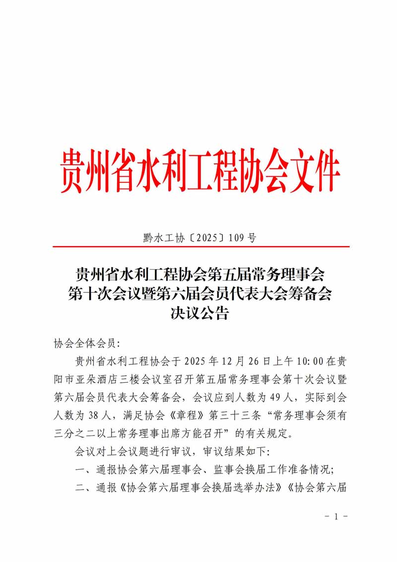 第五届常务理事会第十次会议暨第六届会员代表大会筹备会决议公告