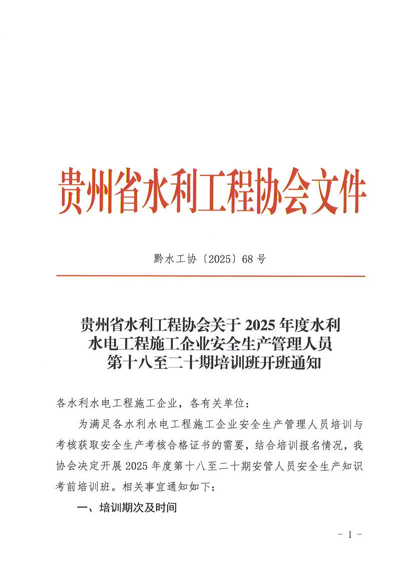 关于2025年度水利水电工程施工企业安全生产管理人员第十八至二十期培训班开班通知