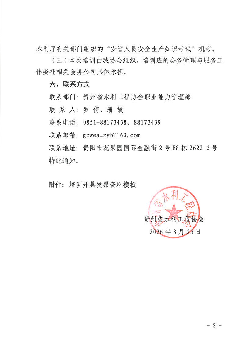 关于2026年度水利水电工程施工企业安全生产管理人员第三至四期培训班开班通知