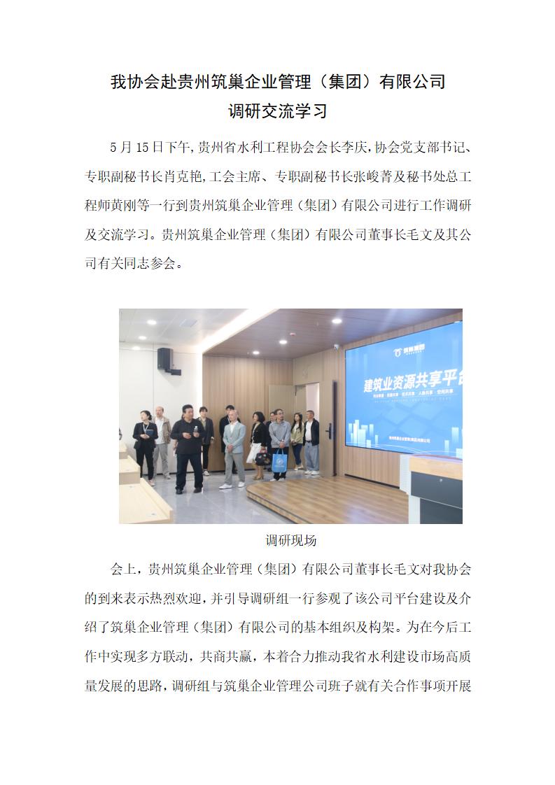 简讯:我协会赴贵州筑巢企业管理(集团)有限公司调研交流学习