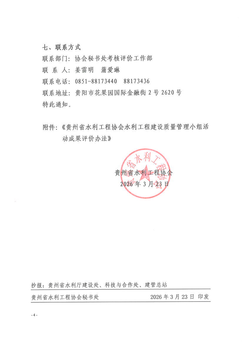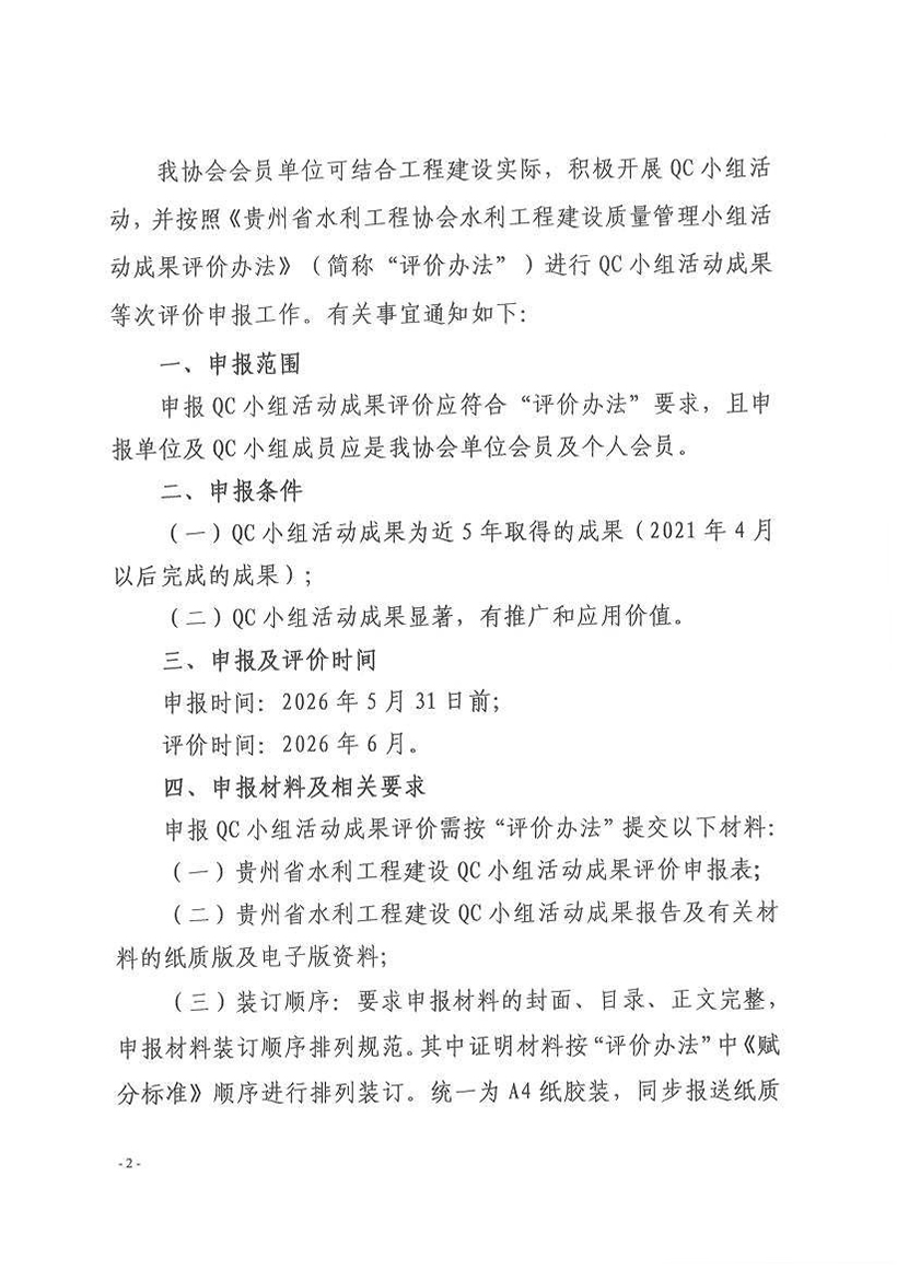 关于开展2026年度水利工程建设质量管理小组活动成果评价工作的通知