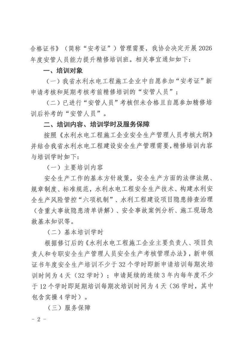 关于2026年度水利水电工程施工企业安全生产管理人员能力提升精修培训报名及(第一期)开班的通知